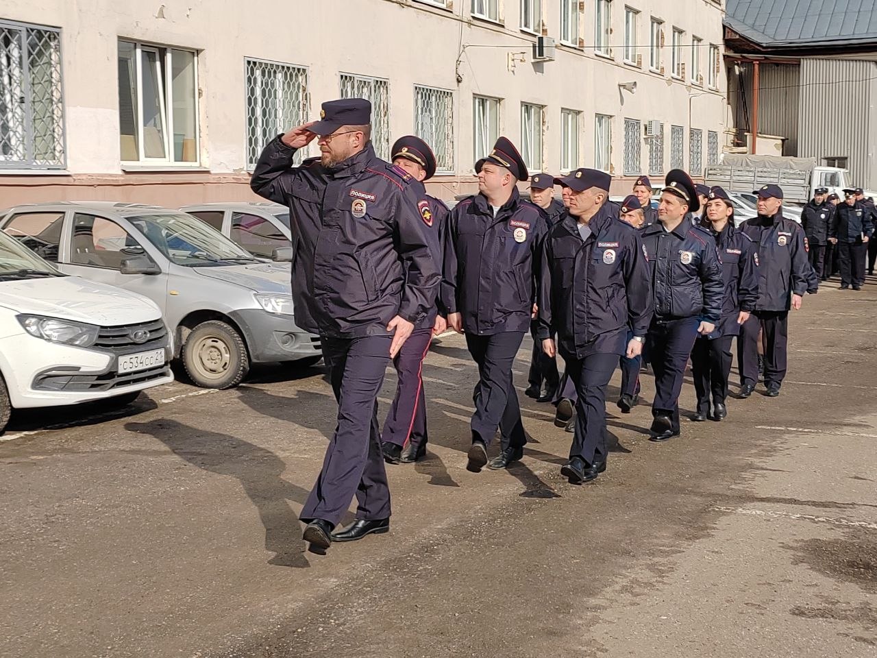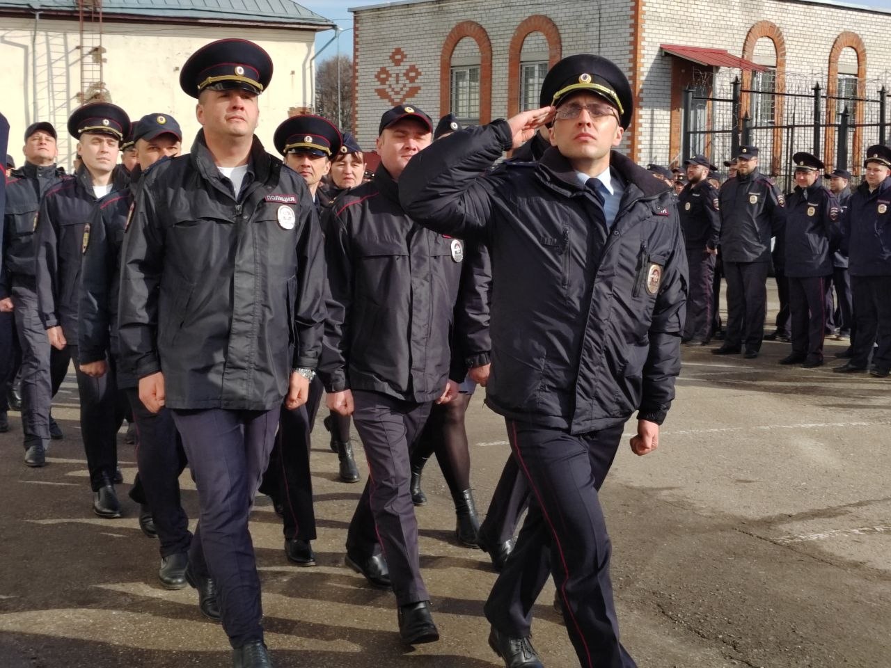 Кроме формы инспекции подверглась и строевая выправка личного состава –полицейские прошли парадным маршем.