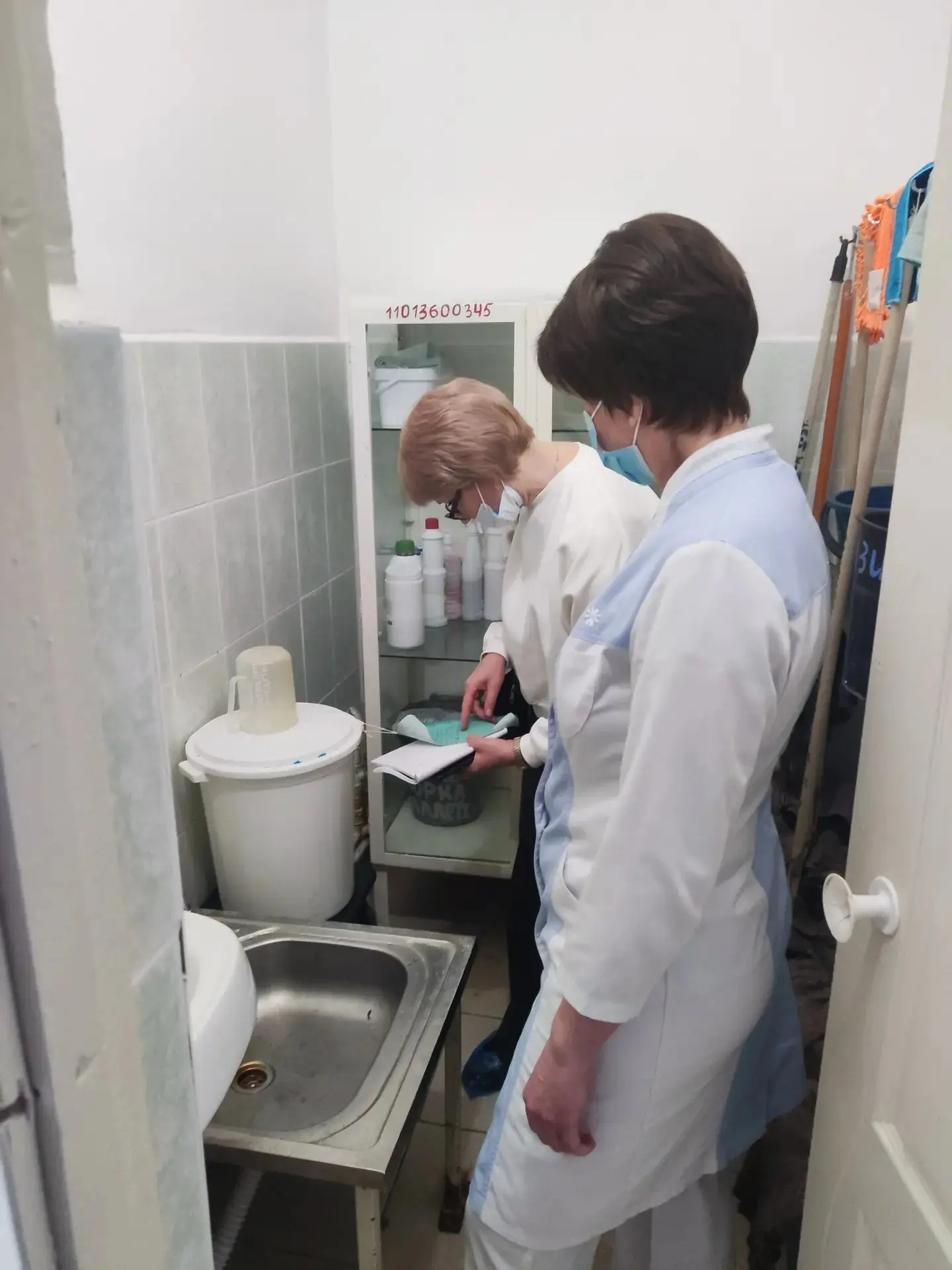 Выявлены нарушения в отделке стен, потолков, полов, которые имеют сколы и трещины, что не позволяет в полной мере осуществлять их санитарную уборку (очистку) и дезинфекцию.
