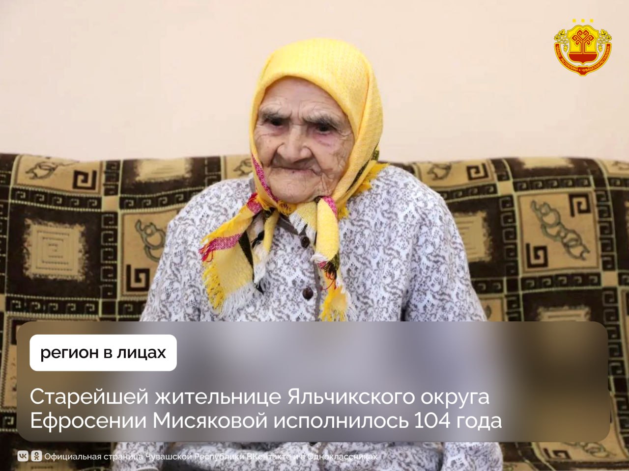 Сегодня самая пожилая жительница Яльчикского округа Ефросения Мисякова празднует 104-летие. Живет она в селе Большие Яльчики.