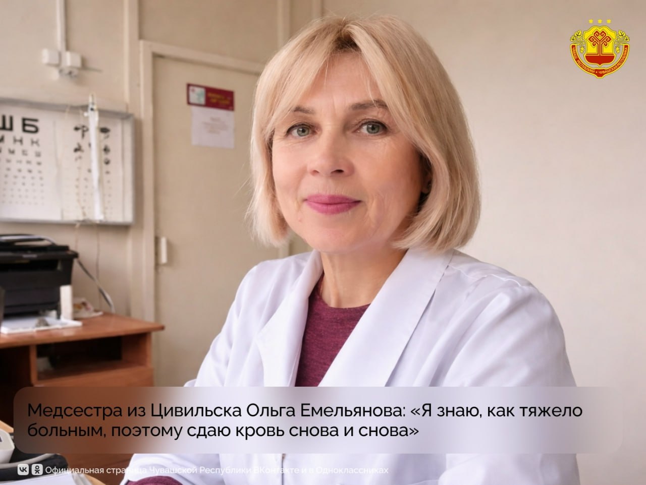 Сегодня хотим рассказать историю почетного донора, медсестры из Конарской школы Цивильского округа Ольги Емельяновой. Ее общий медицинский стаж составляет 43 года, из них свыше 20 лет она трудится в Цивильской больнице.