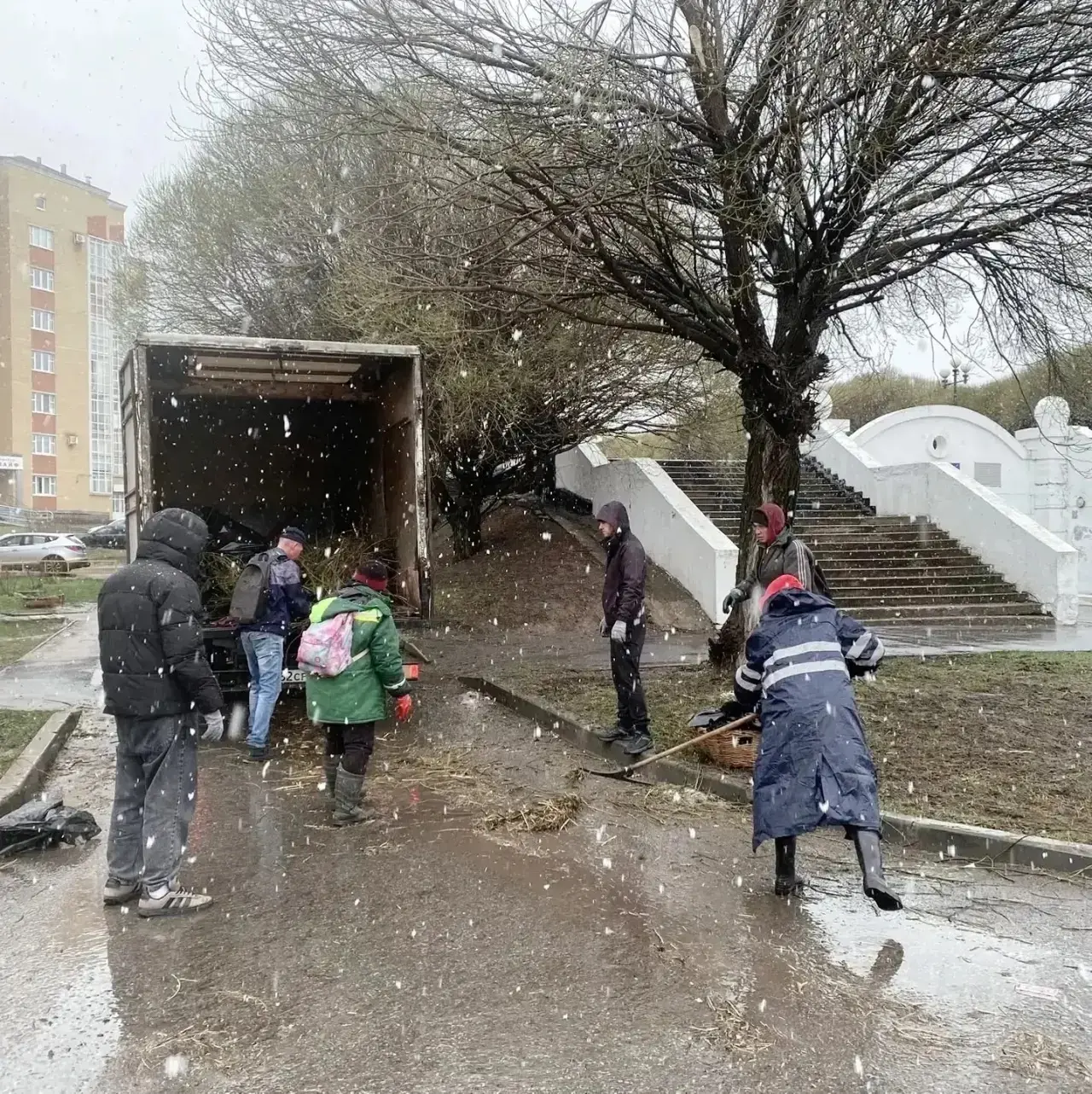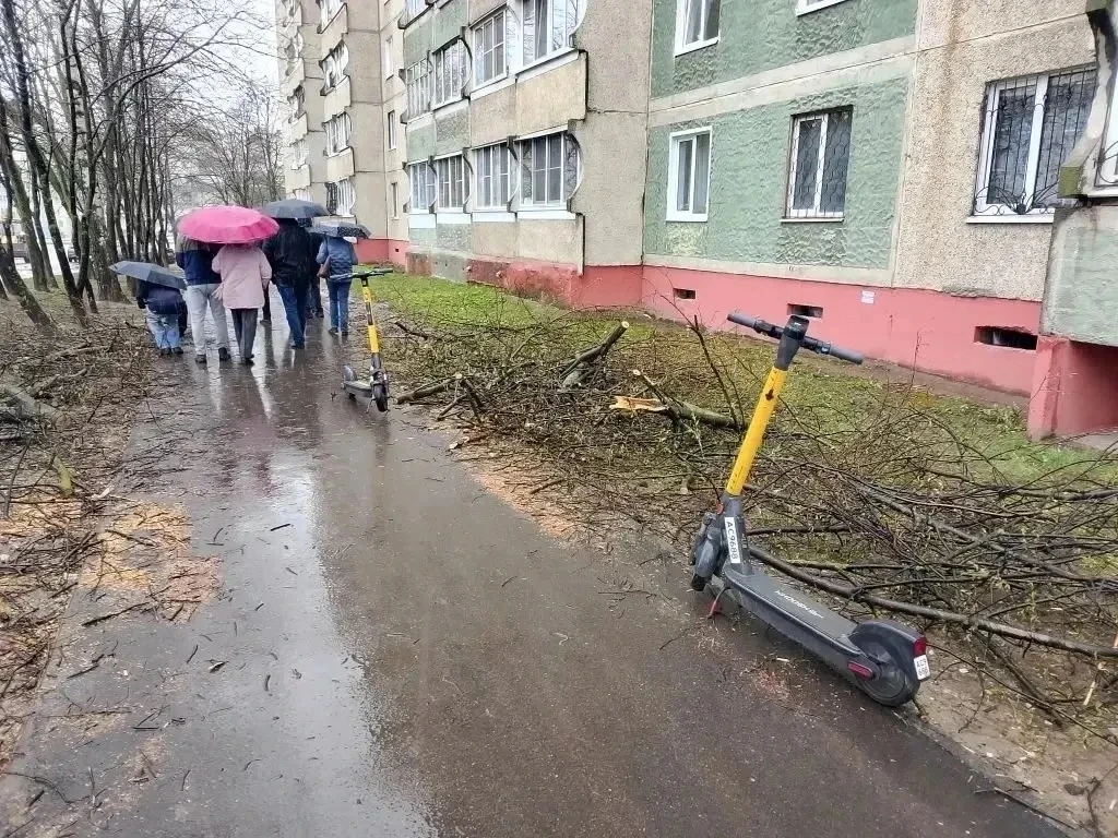 Уборка придомовых территорий. Зафиксированы скопления неубранных веток и мусора. Даны поручения управляющим организациям — в кратчайшие сроки привести территории в надлежащий вид.
