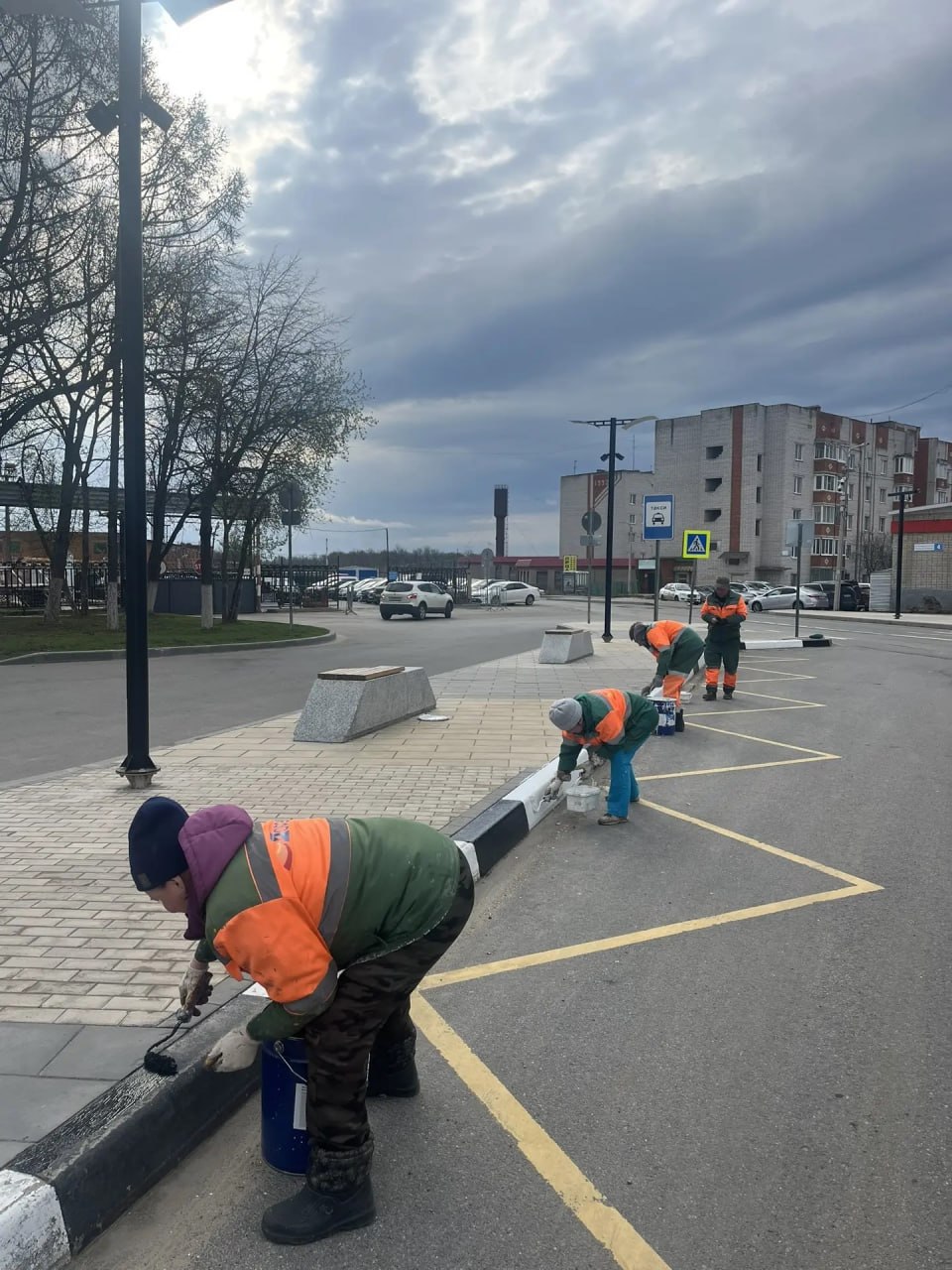 покраска бордюра у кольца ТЦ "Шупашкар", на Московском проспекте, на Привокзальной улице, у кольца пр. Мира и И. Яковлева