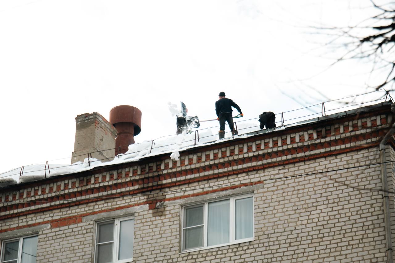 За прошедшие выходные во всех районах Чебоксар были задействованы десятки бригад и специализированная техника по очистке кровель МКД от снега и сосулек.