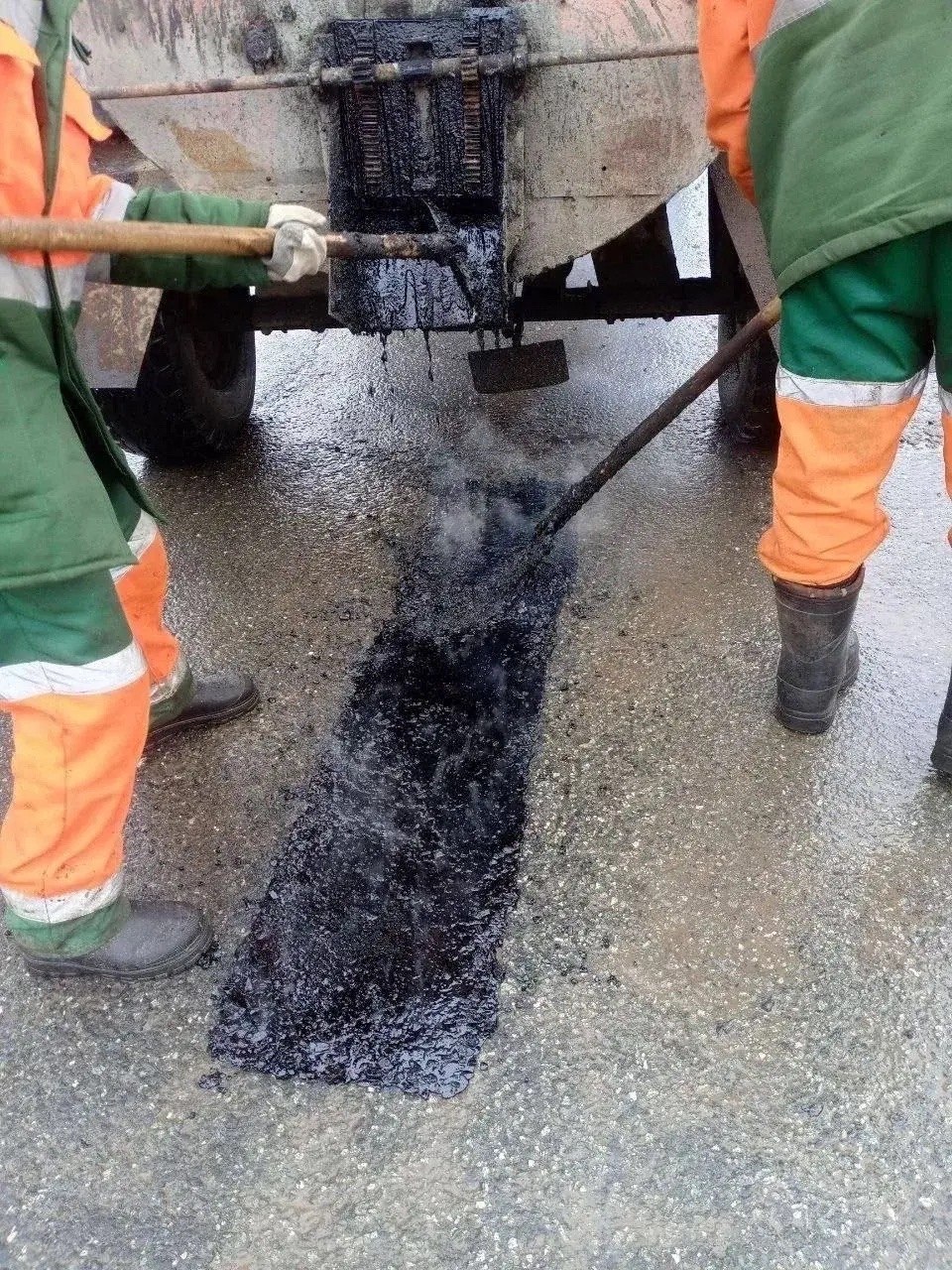 Использовано 4,5 тонны холодного асфальта — технология работает даже при капризной весенней погоде
