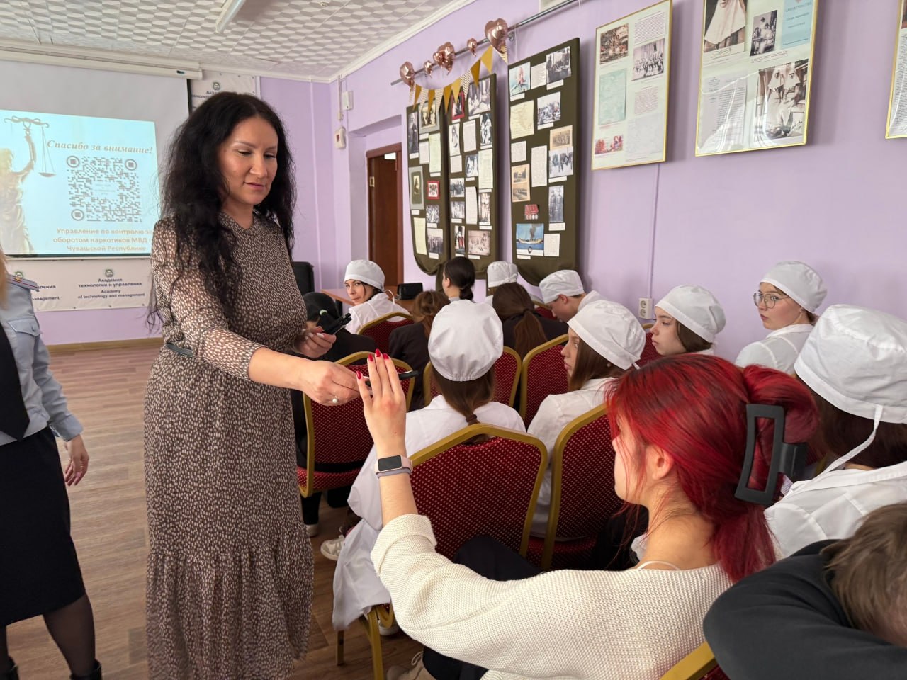 В завершение встречи студенты смогли проверить свои знания, приняв участие в небольшом тестировании. Благодаря внимательному прослушиванию лекции они успешно справились с заданиями и с легкостью ответили на все вопросы.