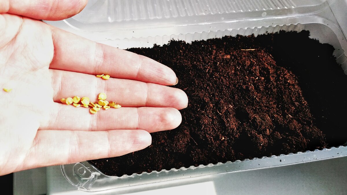 В рассадные ёмкости сначала раскладывают трехсантиметровый слой дренажа, затем заполняют грунтом и уплотняют. Семена размещают на поверхности и присыпают землей слоем не более 1 см. После уплотнения грунта необходимо аккуратно увлажнить его, лучше всего с помощью пульверизатора – это предотвратит заглубление семян. Слишком сильный полив может привести к образованию грязи, что неблагоприятно скажется на росте.