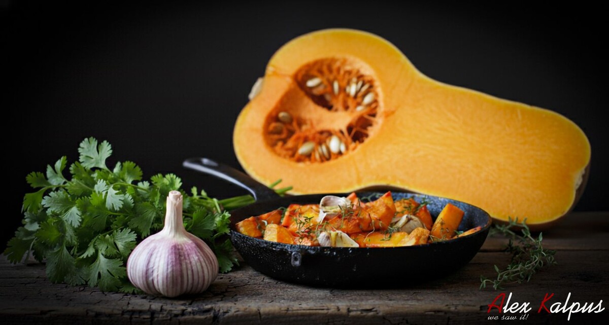 Жареная тыква с чесноком и зеленью