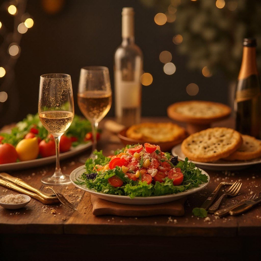 Не забудьте о традиционном шампанском, которое придаст вечеру веселое настроение, и о чистой воде — символе жизненной силы. Создайте уют с помощью свечей и зелени, добавив аромат мандаринового дерева или ели. Эти детали не только украсит стол, но и создадут притяжение удачи.