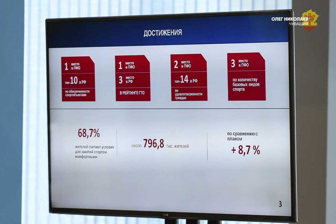 Одним из главных результатов стало вхождение Чувашии в тройку регионов-лидеров по реализации ГТО. Количество базовых видов спорта выросло с 18 до 21 — республика в тройке лидеров ПФО. С учетом приоритетных направлений, включая борьбу креш и спорт лиц с интеллектуальными нарушениями, 23 вида претендуют на получение бюджетного финансирования.