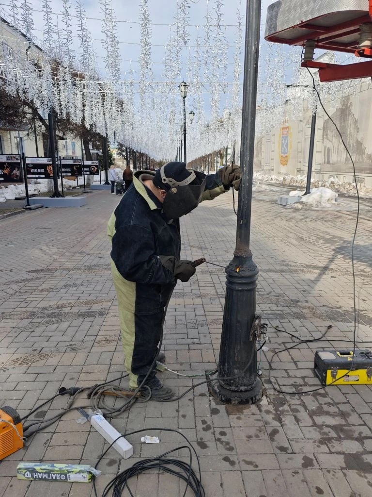 "Горсвет": обследовали и очищали от водовыпускных решеток на территории "Водоканала", заменили аварийные ж/б опоры ул. Башмачникова 29 и ул. Хузангая, установили торшерную стойку на бульваре купца Ефремова.