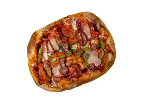 - Мясная пицца — щедро усыпанная колбасами, беконом и курицей.
