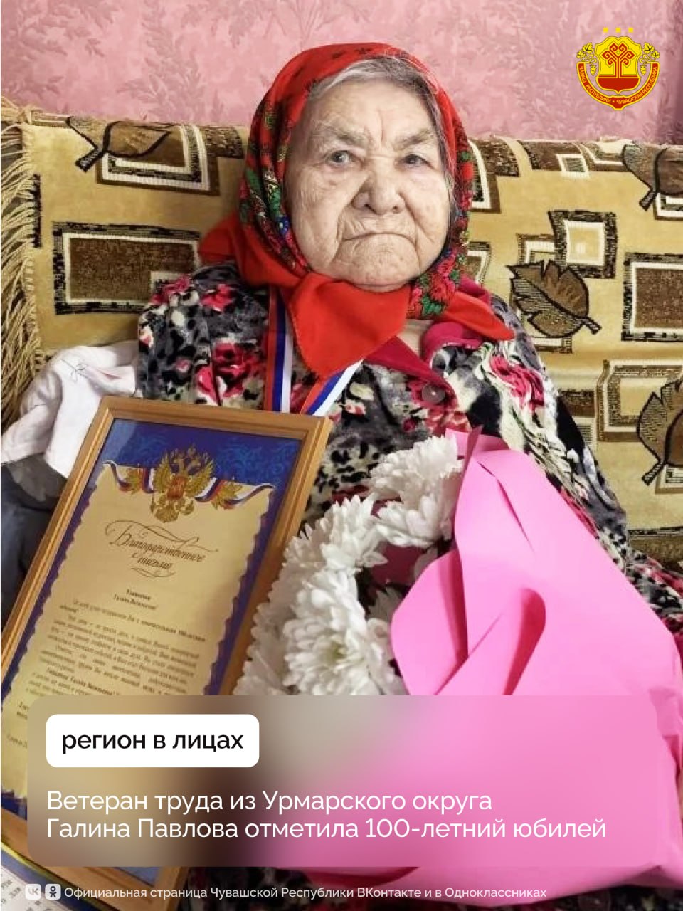 Жительница деревни Новое Исаково Арабосинского теротдела Урмарского округа Галина Павлова отпраздновала вековой юбилей. В свои 100 лет она сохранила удивительную ясность ума, оптимизм, жизнелюбие.