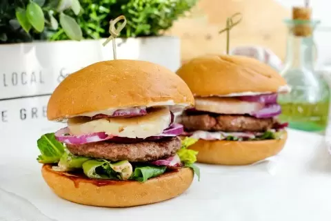Как насчет того, чтобы добавить немного ярких красок в ваше меню? Бургер «Майами» — это не просто блюдо, а настоящая кулинарная феерия с говяжьей котлетой, ананасами и аппетитным соусом барбекю. Этот бургер станет идеальным выбором для летних пикников или дружеских встреч.