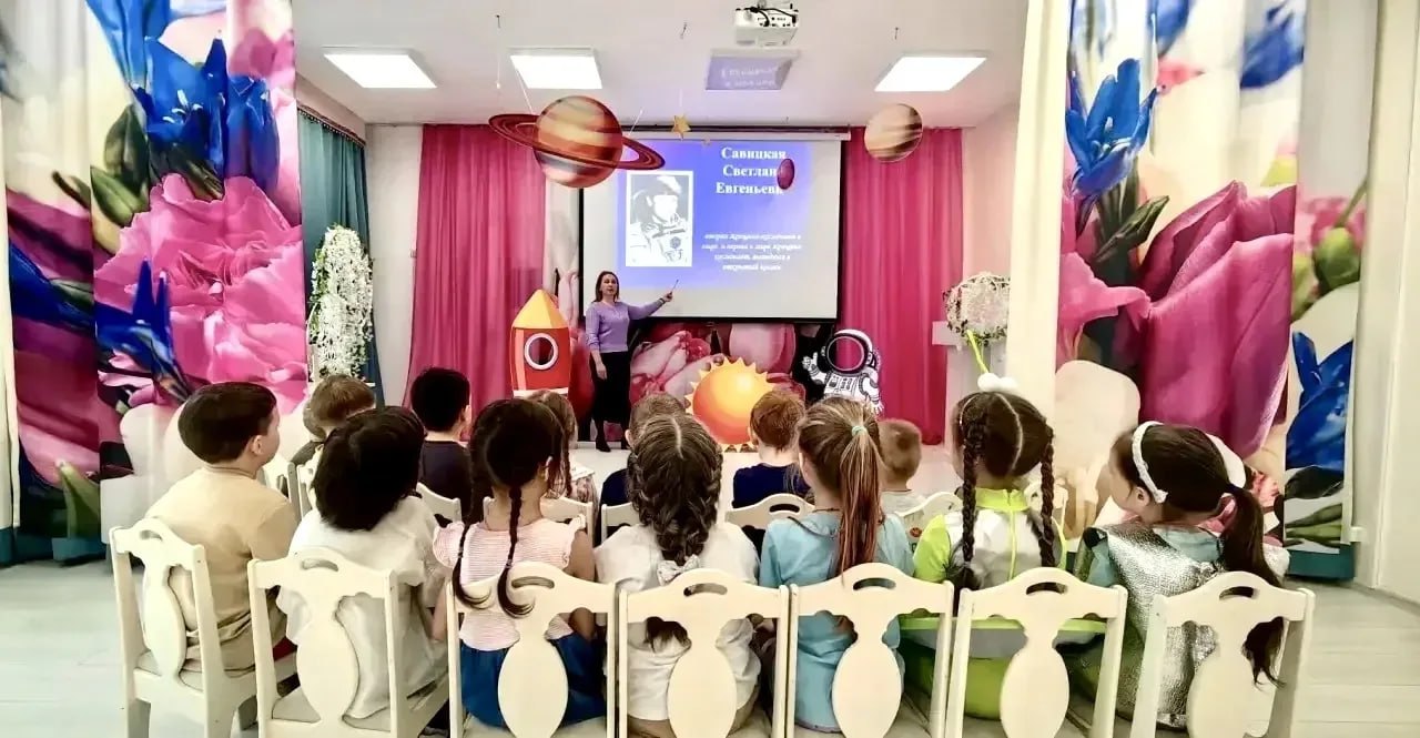 В преддверии Дня космонавтики в детских садах города педагоги - активисты Женского движения рассказывают о Валентине Терешковой, Светлане Савицкой и других героинях, покоривших космос.
