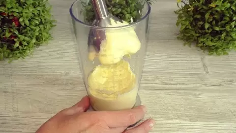Начинать следует с приготовления эмульсии из растительного масла и яйца. Положите ингредиенты в блендер, прижмите их ножкой и включите, пока не получится однородная густая масса, напоминающая майонез. Уберите эмульсию в сторону и приступайте к тесту.
