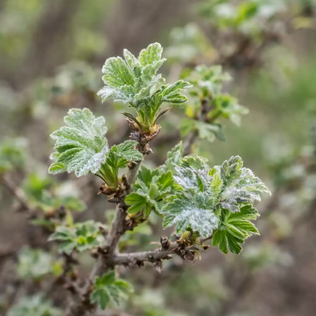 С приходом весны крыжовник радует своей свежестью. Однако уже в начале сезона на его молодых листьях может появиться белесый налет. Сначала он выглядит как легкая пудра, но вскоре становится плотным слоем, приводя к деформации побегов и слабым ягодам.