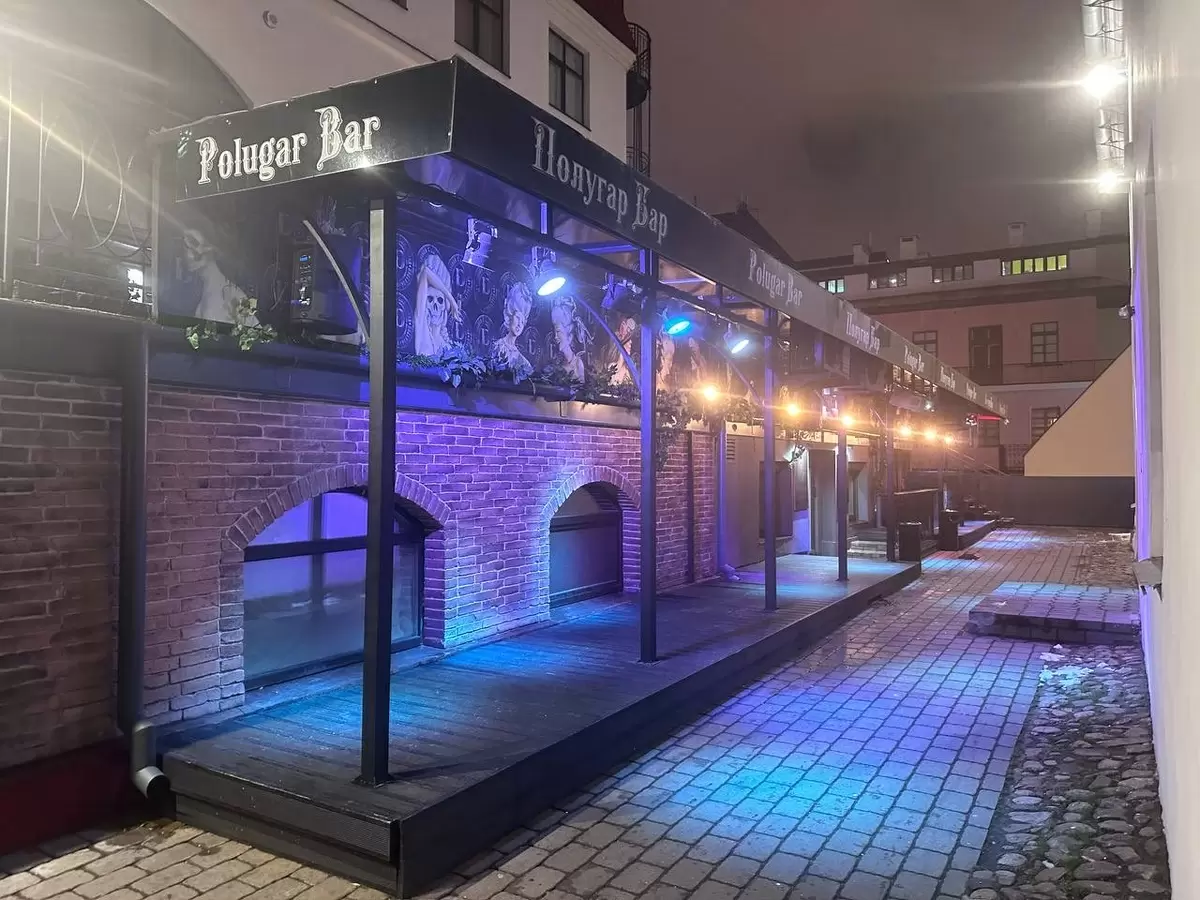 Бар «Полугар» работает с 20:00 до 5:00 (до 6:00 по выходным), располагается в полуподвальном помещении и предлагает приют для любителей хорошего алкоголя. В центре зала расположен круглый стол, окруженный уютными кожаными диванами и столами на 4-8 персон. Красивые витражи и оригинальная барная стойка, обшитая металлом, создают неповторимую атмосферу.