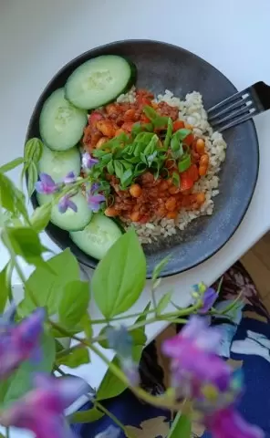 - Бурый рис с чили кон карне: это сытное мексиканское блюдо просто создано для того, чтобы утолить голод. В его составе говяжий фарш, томаты, перец и фасоль, а за свежесть отвечают огурцы и зеленый лук.