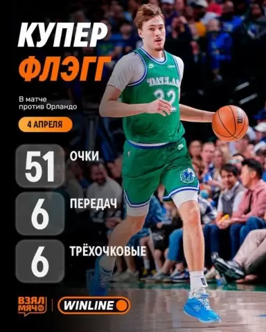 Форвард "Далласа" Купер Флэгг совершил впечатляющий подвиг, став самым юным игроком в истории лиги, который смог набрать более 50 очков за матч.