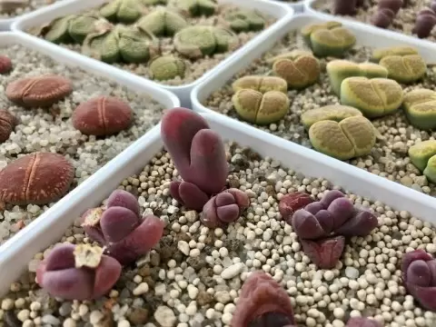 - Литопс: Известный как живой камень, литопс отличается способностью вытягиваться при нехватке света и может потерять великолепие, если не будет получать достаточное количество солнечных лучей.
