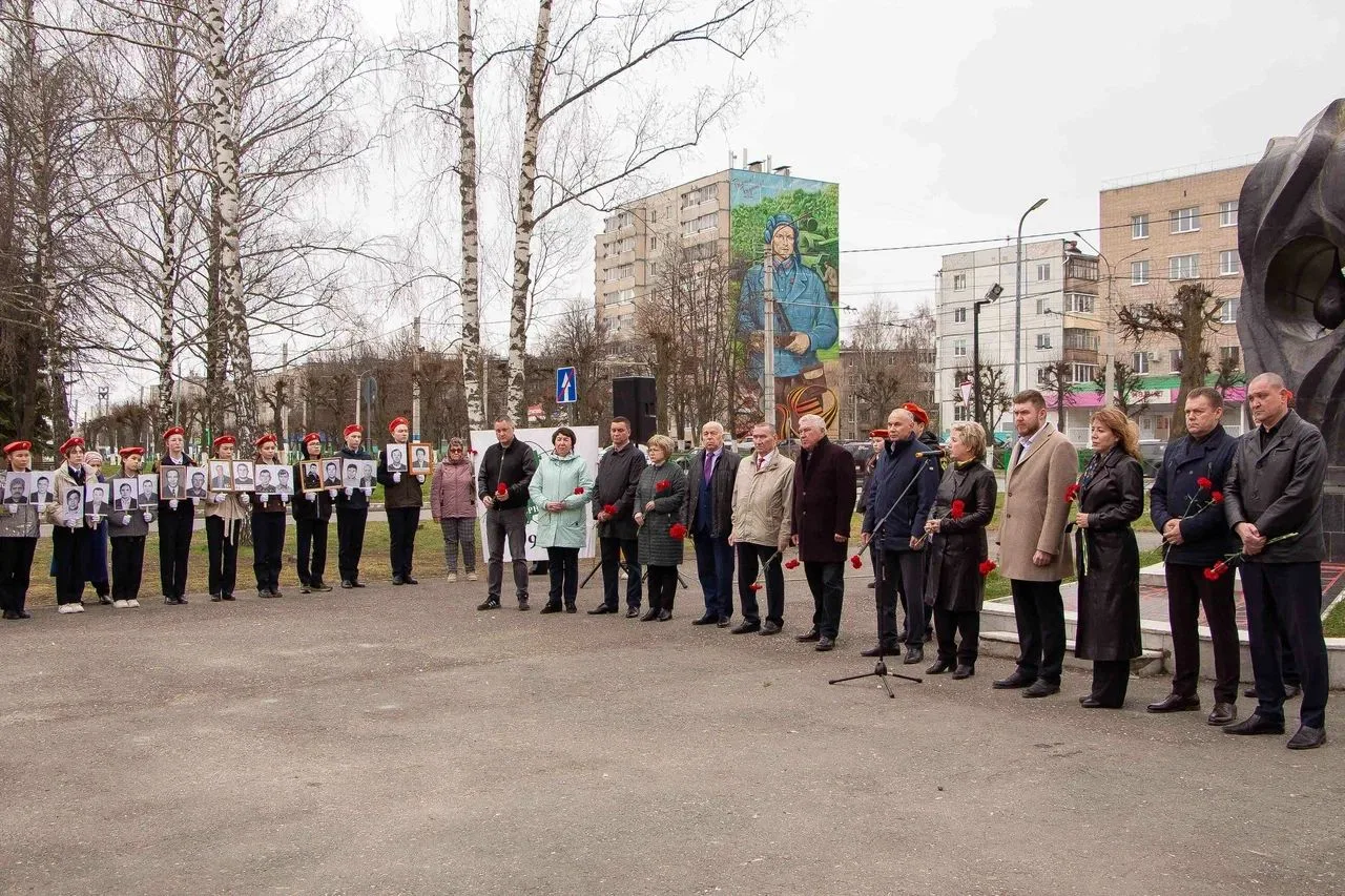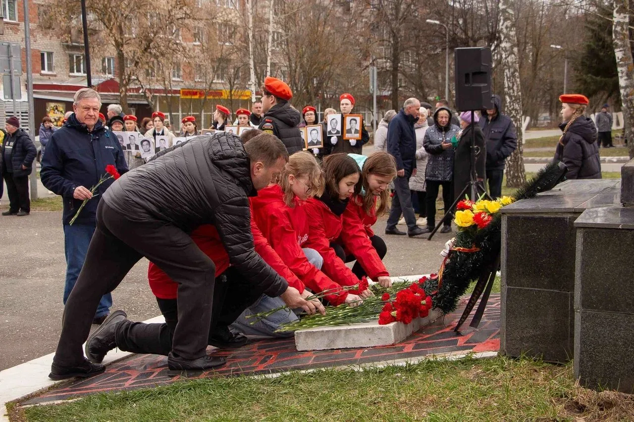 Официальные лица и все участники церемонии почтили память ушедших минутой молчания и возложили цветы к подножию монумента.