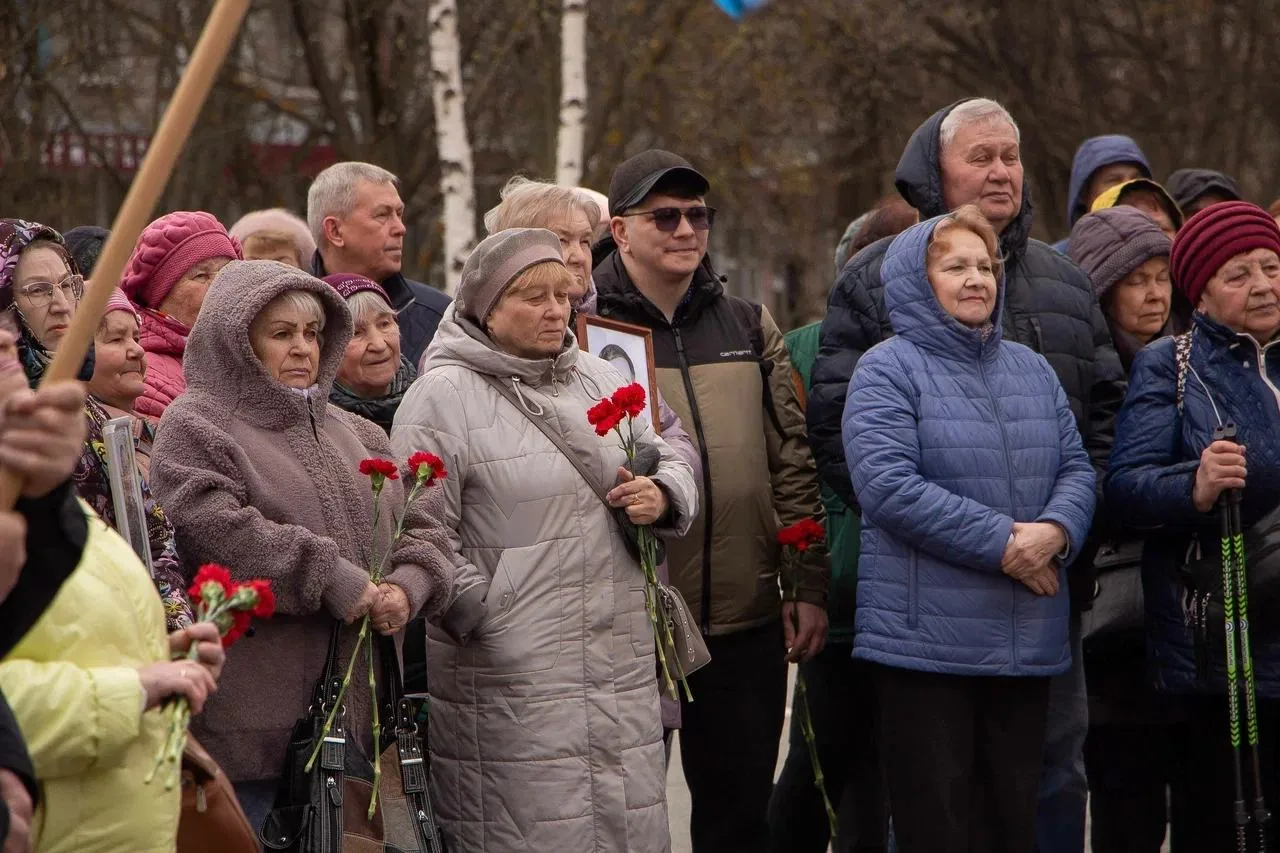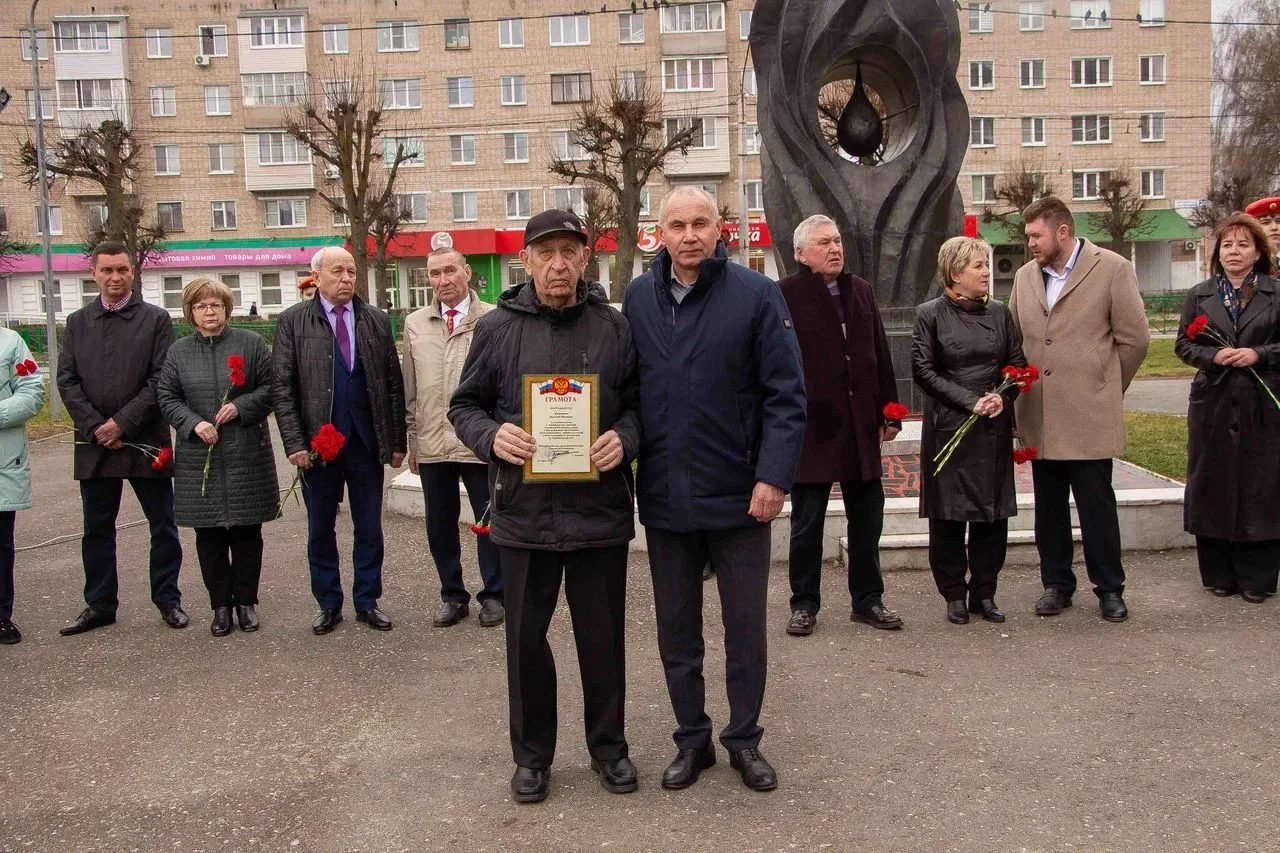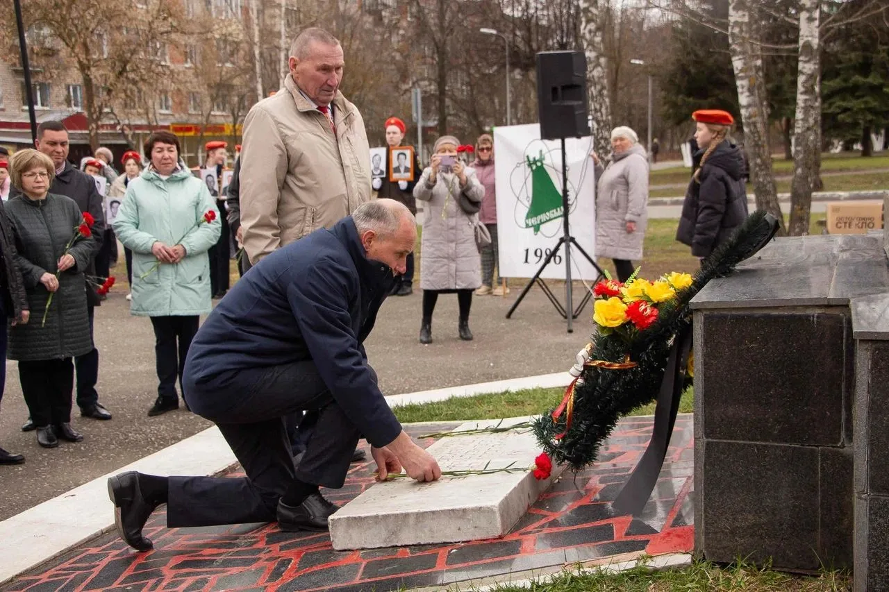 К монументу жертвам Чернобыльской АЭС и других техногенных катастроф, чтобы почтить память погибших и пострадавших, пришли ветераны-чернобыльцы, их вдовы и родственники, депутаты НГСД, учащиеся школ и официальные лица.