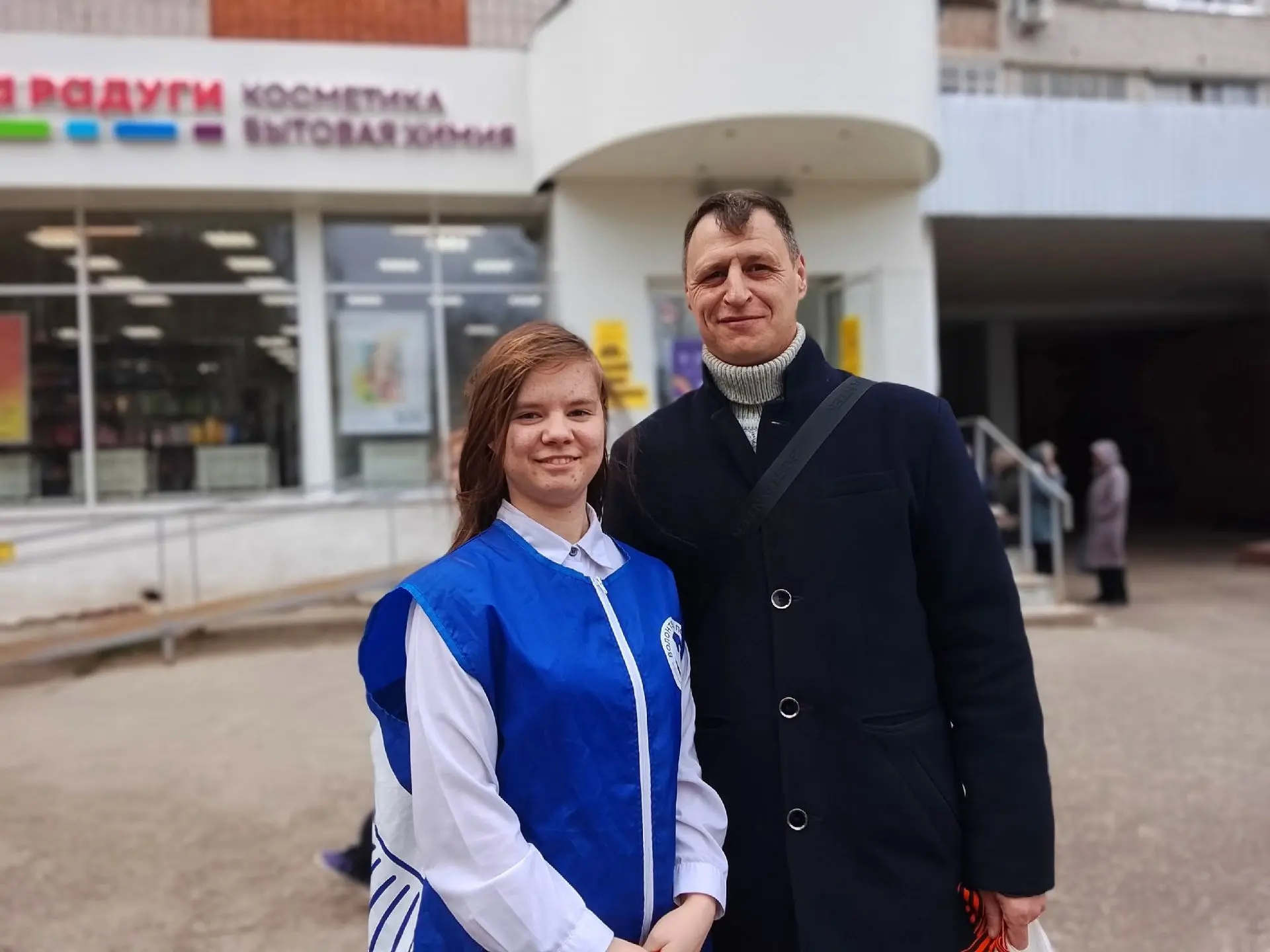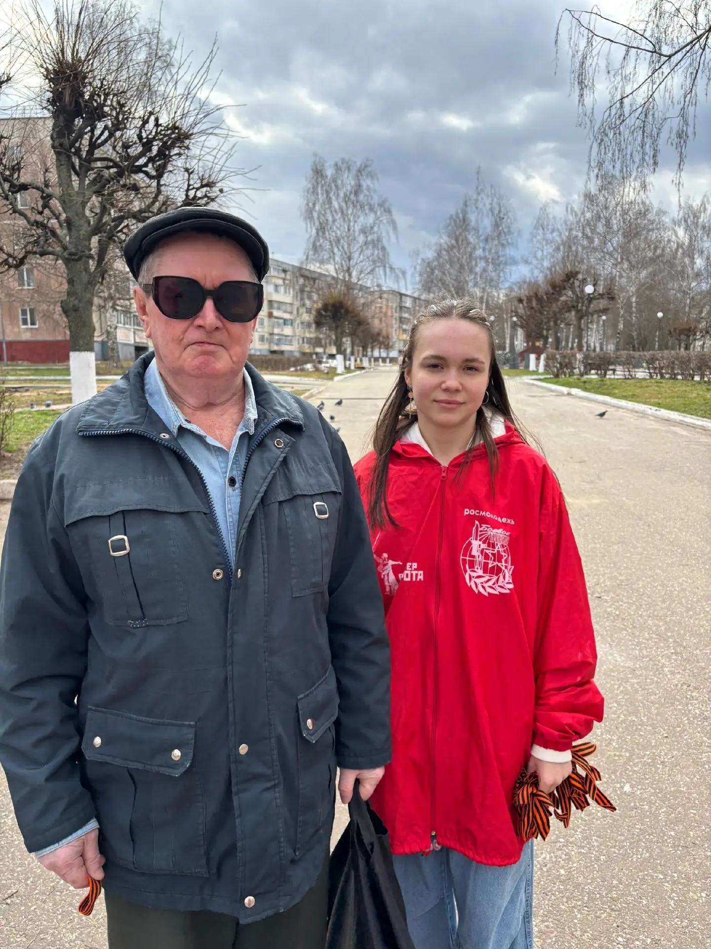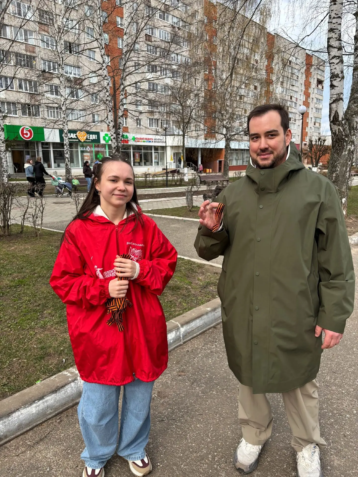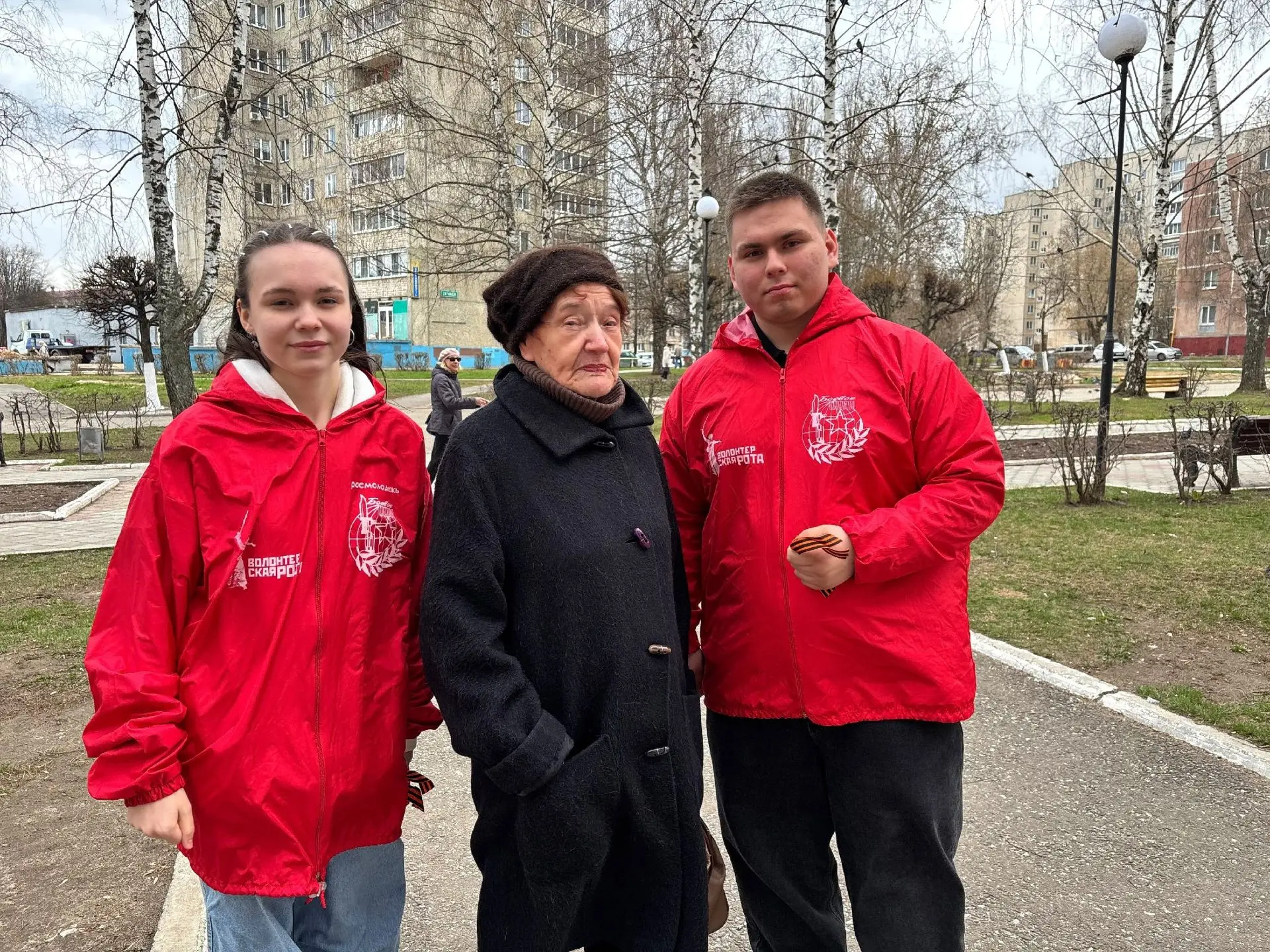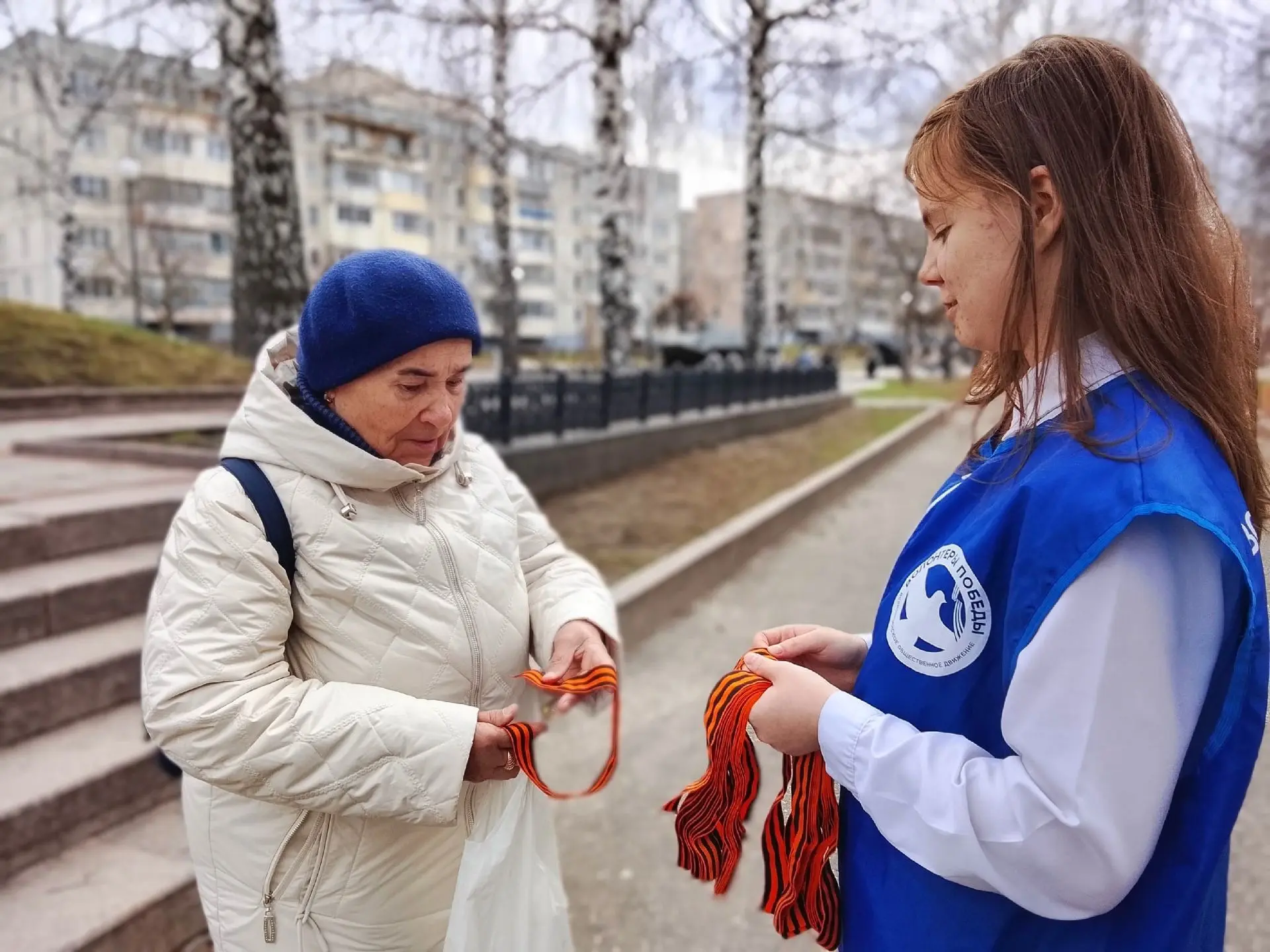 Волонтёры Победы и активисты Волонтёрской роты раздают символ воинской славы - Георгиевскую ленту и рассказывают о правилах её ношения. Жители города с особым трепетом принимают Георгиевскую ленту в преддверии праздника.