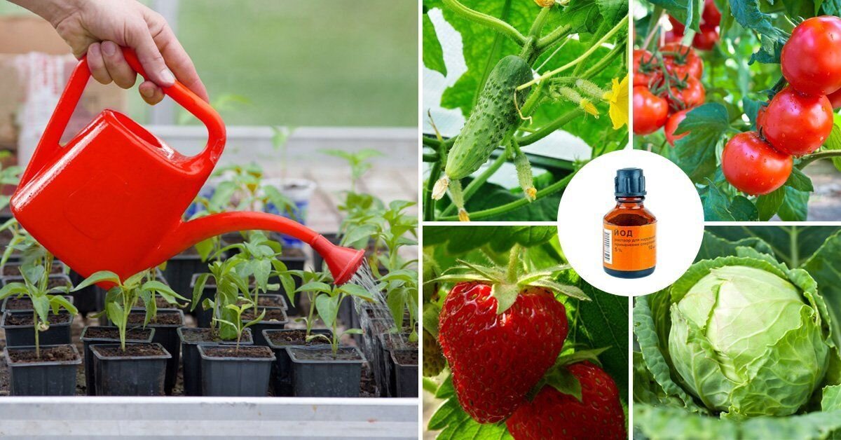 Йод особенно полезен для томатов, где он значительно снижает вероятность фитофтороза, улучшая при этом урожайность. Рекомендуется применять смесь из 0,5 литра молока, 5 литров воды, 7 мл перекиси водорода и 20 капель йода — такой состав достаточно использовать всего три раза за сезон. Для получения крупных и здоровых кочанов капусты нужно всего 40 капель на 10 литров воды, расходуя по литру на каждое растение.